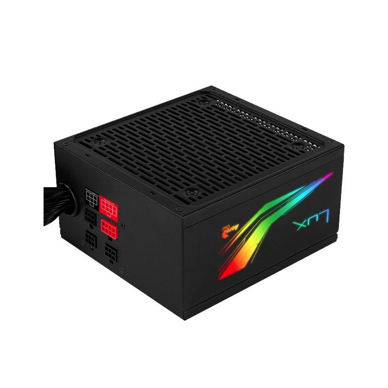 Características:. Más De Un 88 % De Eficiencia. Certificado con el Bronze EU 80Plus 230V para rendimiento de alta eficiencia.. Compatible Con Addressable RGB. Imprima su estilo y personalice la iluminación con 16,8 millones de colores. Esta fuente de alimentación es compatible con las placas base RGB direccionables que usan un conector RGB direccionable de + 5V.. Estiloso Diseño RGB. La fuente de alimentación LUX RGB viene equipada con iluminación LED RGB para alimentar tu sistema con estilo.. Haga que su sistema cobre vida con 13 efectos de iluminación únicos que se pueden controlar a través del botón de control LED.. Diseño Semi Modular. El diseño inteligente semi-modular, junto con los cables flexibles, negros y planos, facilita la administración e instalación de los cables.. Ventilación Mejorada Del Aire. 30% de aumento del área de ventilación en el cuerpo de la fuente de alimentación permite un aumento del flujo de aire y de la circulación, lo que evita que el sistema se sobrecaliente.. Velocidad Optimizada Del Ventilador. Ventilador negro y silencioso de 12 cm con control optimizado de la velocidad de ventilación térmica. El ventilador funciona a la velocidad de arranque (menos de 800 RPM) antes de alcanzar el 60% de carga a 25º C de temperatura ambiente.. Compatibilidad. Compatible con todos los factores de forma de Intel hasta ATX12V Ver. 2.4.